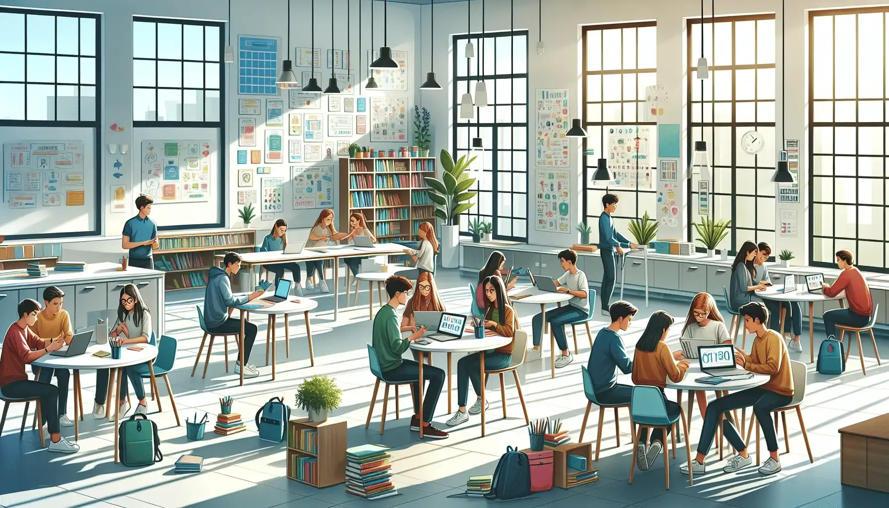 7. Spații de Învățare Flexibile: Crearea unor spații de învățare care susțin colaborarea și interacțiunea poate stimula creativitatea și dorința de învățare. Designul flexibil al clasei, cu mobilier modular și resurse tehnologice la îndemână, facilitează activități diverse și adaptarea rapidă la diverse metode de predare.